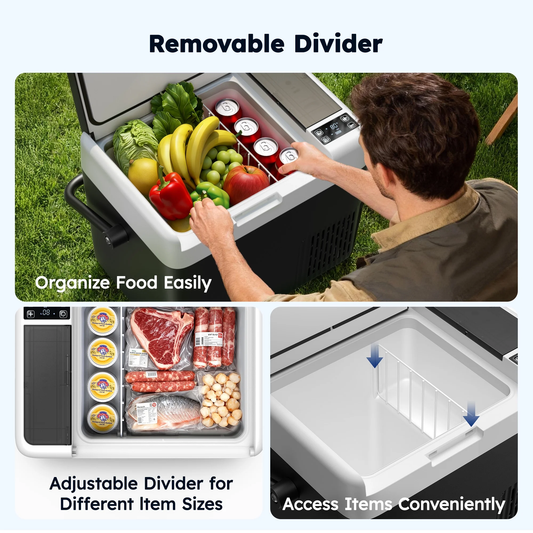 Simzlife 12 Volt Refrigerators, -4℉~68℉, 58 Quart Portable Freezer Mini Fridge 12/24V DC & 120-240V AC, Removable Divider, Car Fridge for Car, RV, Camping, Travel, Fishing, Outdoor or Home