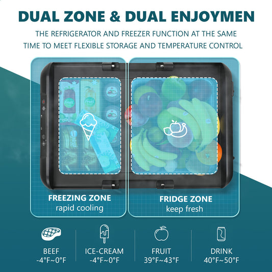 Simzlife 12 Volt Refrigerator, 59QT(55L) Portable Car Refrigerator, Dual Zone, Mini Fridge with Wheels