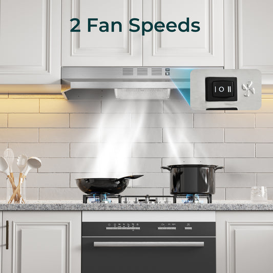 Simzlife Ductless Under Cabinet Range Hood 30 inch with 2 Speed Exhaust Fan, Kitchen Wall Mount Range Hood 300 CFM with 2W LED Light, Vent Hood with Washable Filter, Stainless Steel