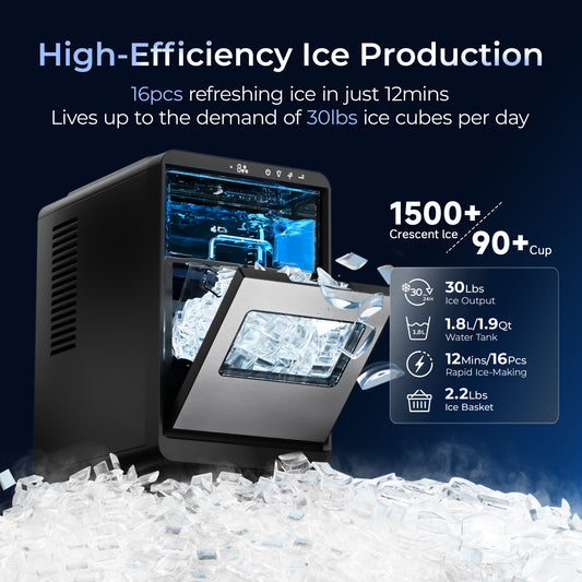 Simzlife Crescent Ice Makers Countertop, 35Lbs/24H, 16Pcs in 12Mins, Auto Deep Cleaning, Timer, Portable Crescent Ice Maker Countertop with Crystal-Clear Ice Cubes for Home/Office/Party