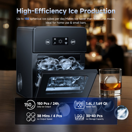 Simzlife Sphere Ice Maker,10 pcs/Hour, 150 pcs/Day,Clear Ice Ball Maker with Enhanced Insulation, with LCD Touch Screen, Self-Cleaning, Quiet Home and Bar Ice for Whiskey Bourbon Parties