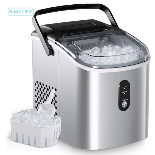 Simzlife Nugget Ice Maker Countertop, Portable Ice Maker Machine with Self-Cleaning Function, 35lbs/Day, Soft Chewable Pellet Ice, Silver