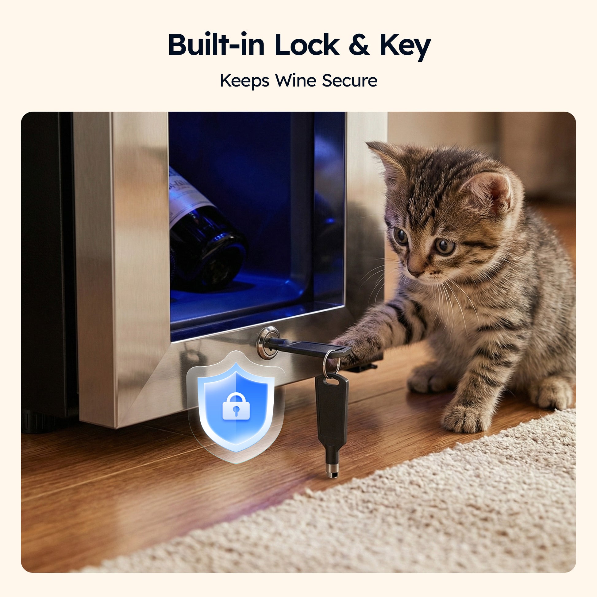 Features a double-tempered glass door with stainless steel frame for improved insulation and modern style. The built-in lock and key help protect valuable wine collections in shared or commercial spaces. -
