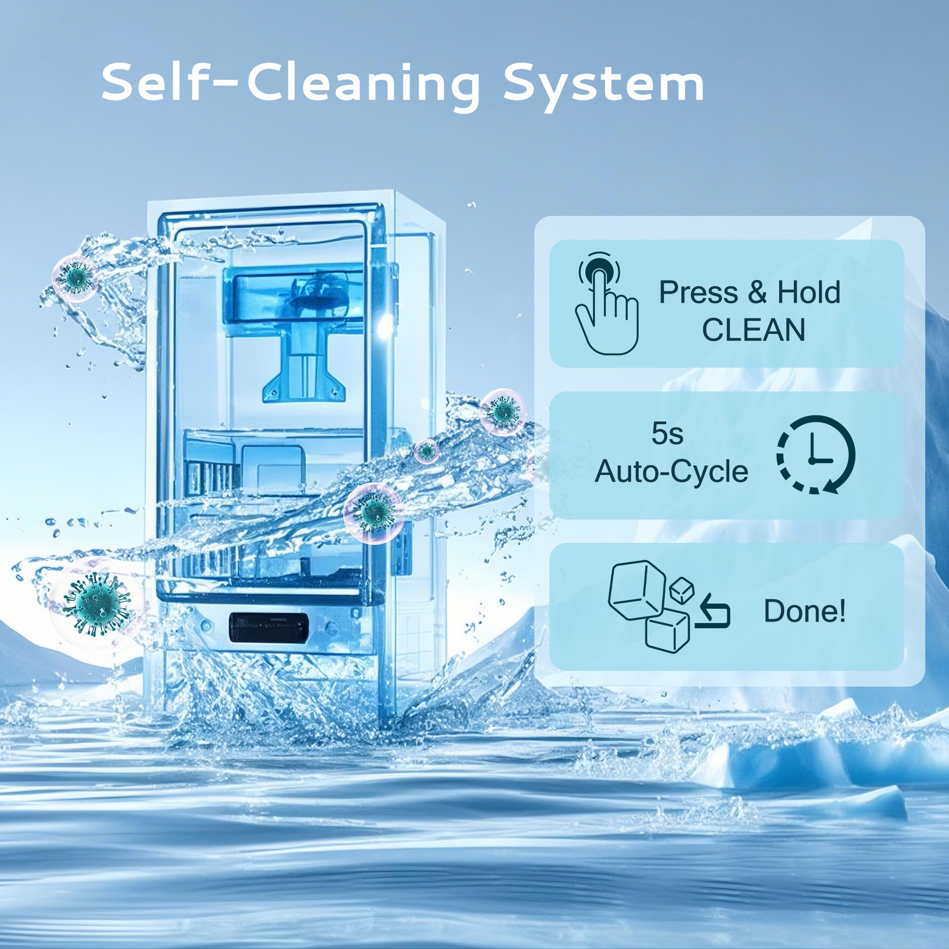 Enjoy safer, cleaner ice with a one-button auto-cleaning system that completes a deep cycle in seconds. The enhanced insulation design keeps ice fresh for up to 8 hours, reducing clumping and melt-off. Thoughtfully engineered for minimal upkeep, giving businesses and homeowners extra peace of mind.