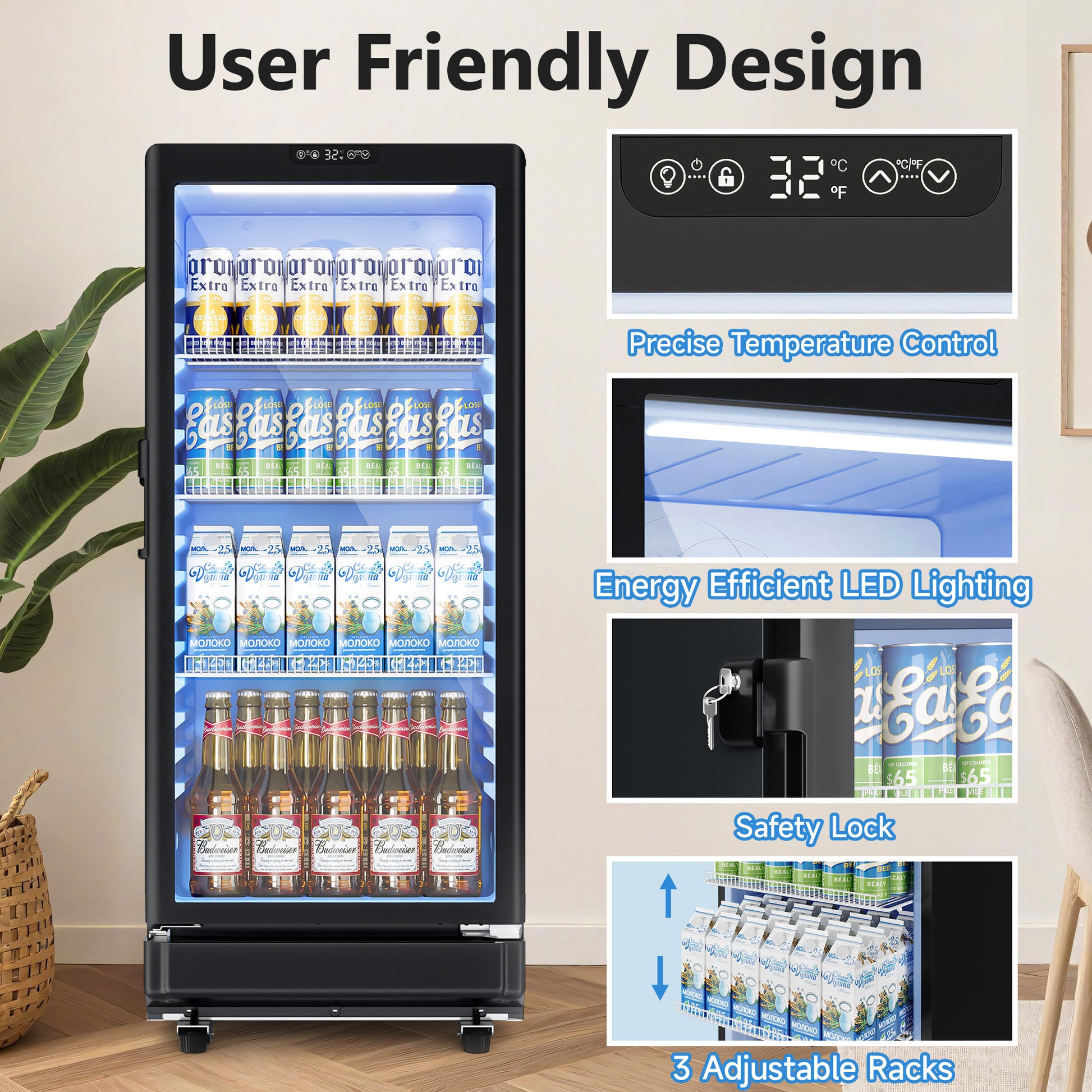 Simzlife Commercial Merchandiser Refrigerator, 6 Cu.ft Glass Door Display Fridge , Digital Temperature Control, Lockable Door, Black