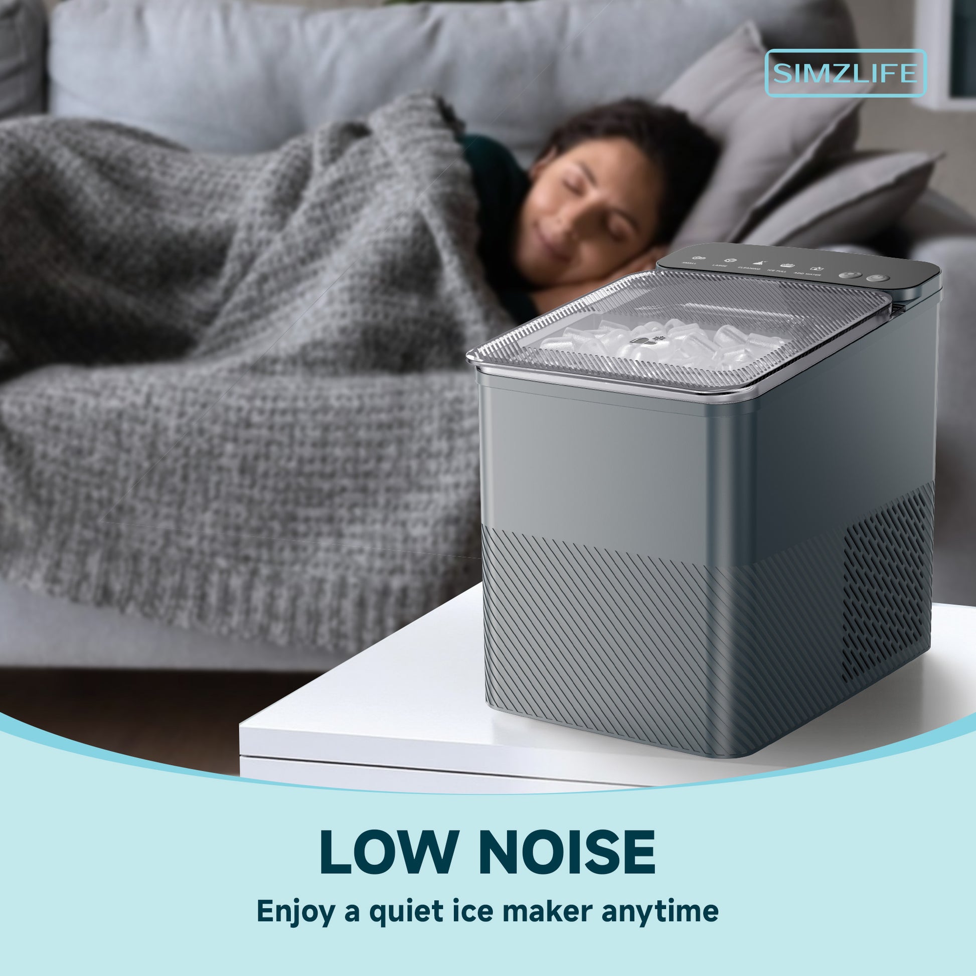 Simzlife Ice Maker Countertop, 9 Cubes Ready in 6 Mins, 26lbs in 24Hrs, Self-Cleaning Ice Machine with Ice Scoop and Basket, 2 Sizes of Bullet Ice for Home Kitchen Office Bar Party, Grey
