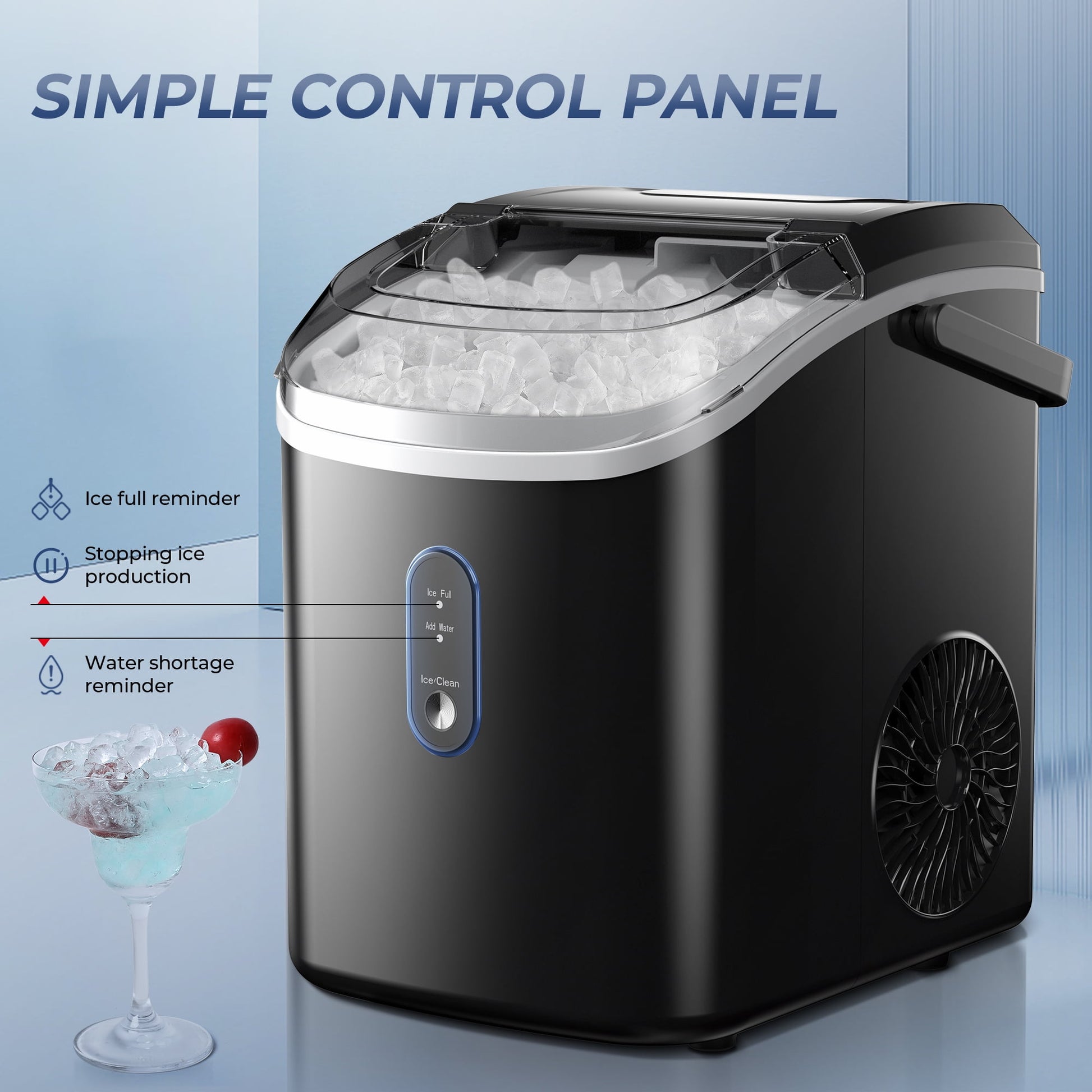 Simzlife Nugget Ice Maker Countertop, Portable Ice Maker Machine with Handle, Self-Cleaning, Ready in 6 Mins, 34lbs/24H, Soft Chewable Ice, Black
